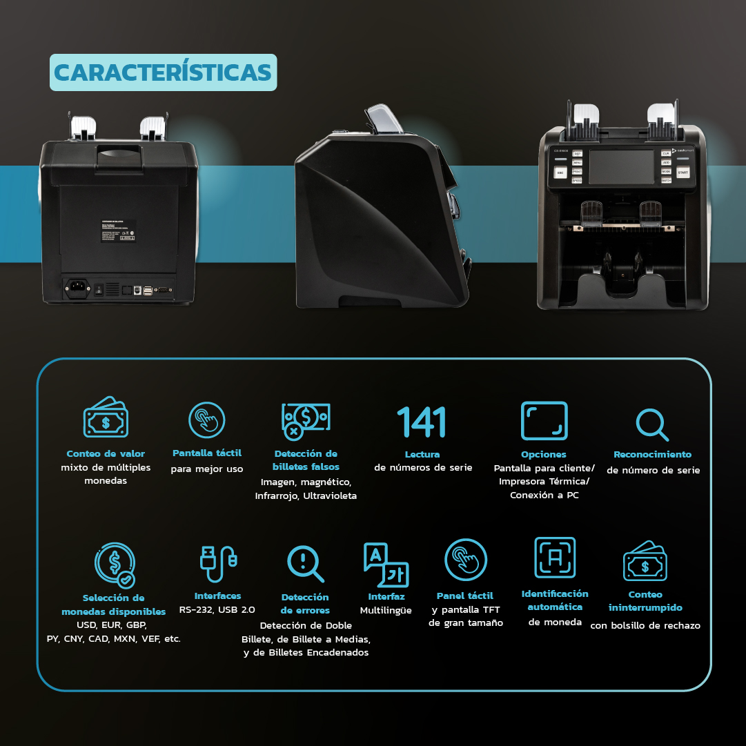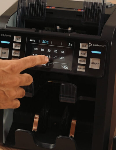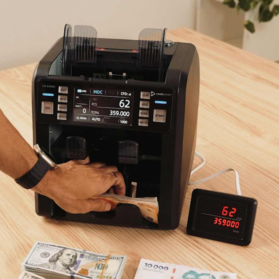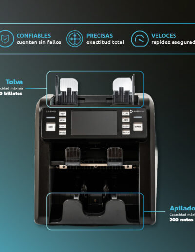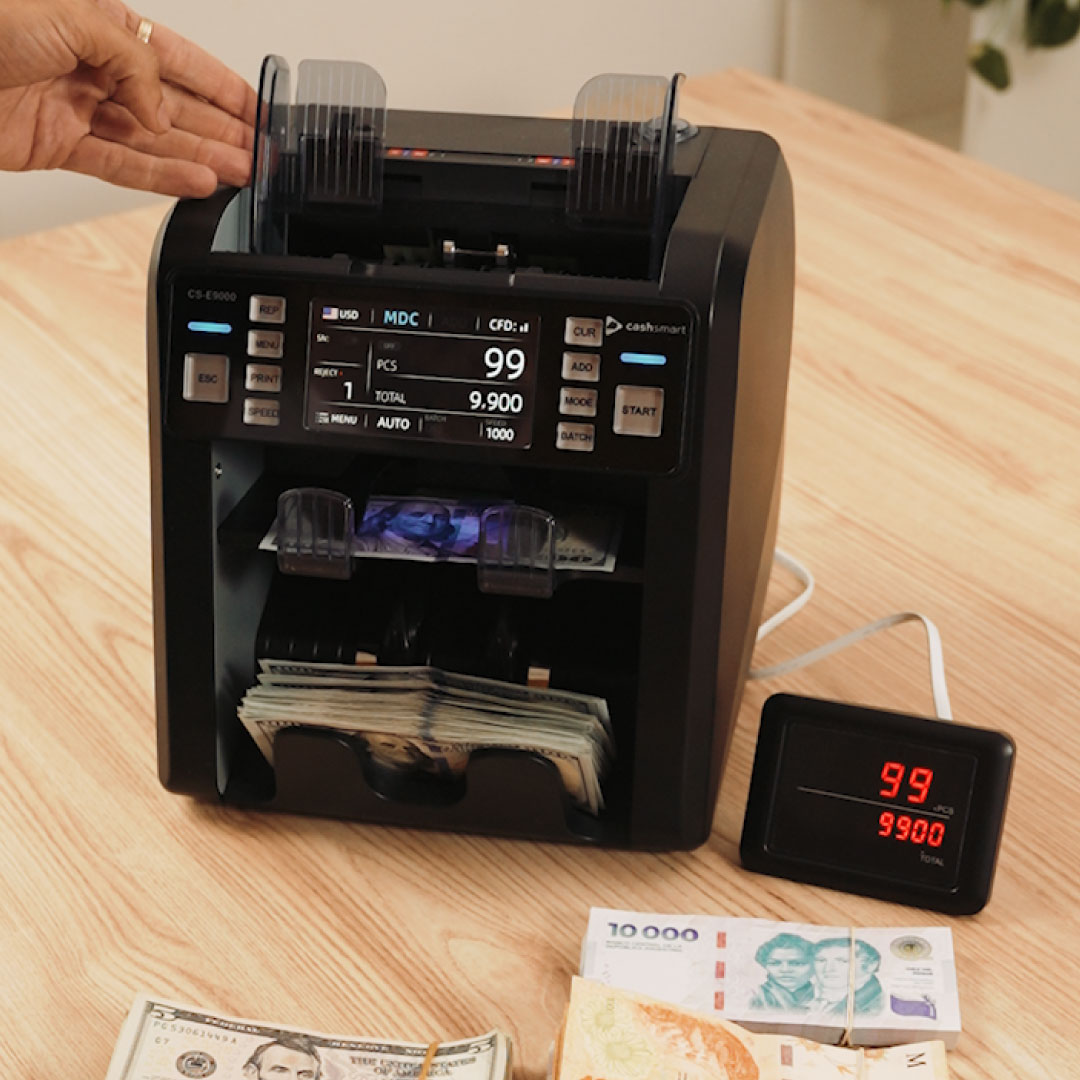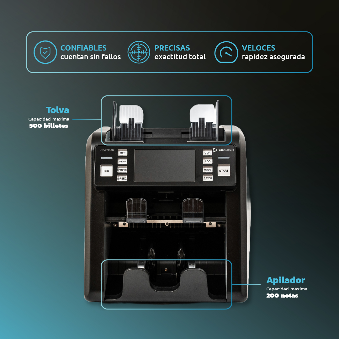 CashSmart CS 9000 combina potencia y tecnología avanzada: conteo ultrarrápido, detección multifactor y funciones inteligentes para un control total del efectivo.