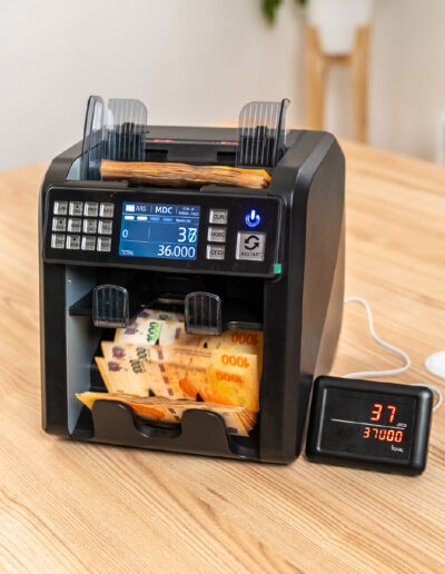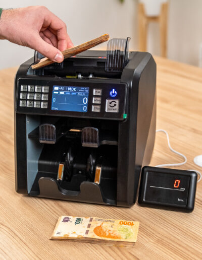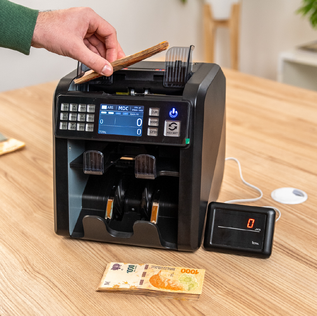 • Identificación de denominaciones: conteo mixto con reconocimiento automático de billetes.