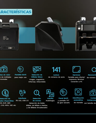 • Protege tu inversión con detección avanzada de billetes falsos.